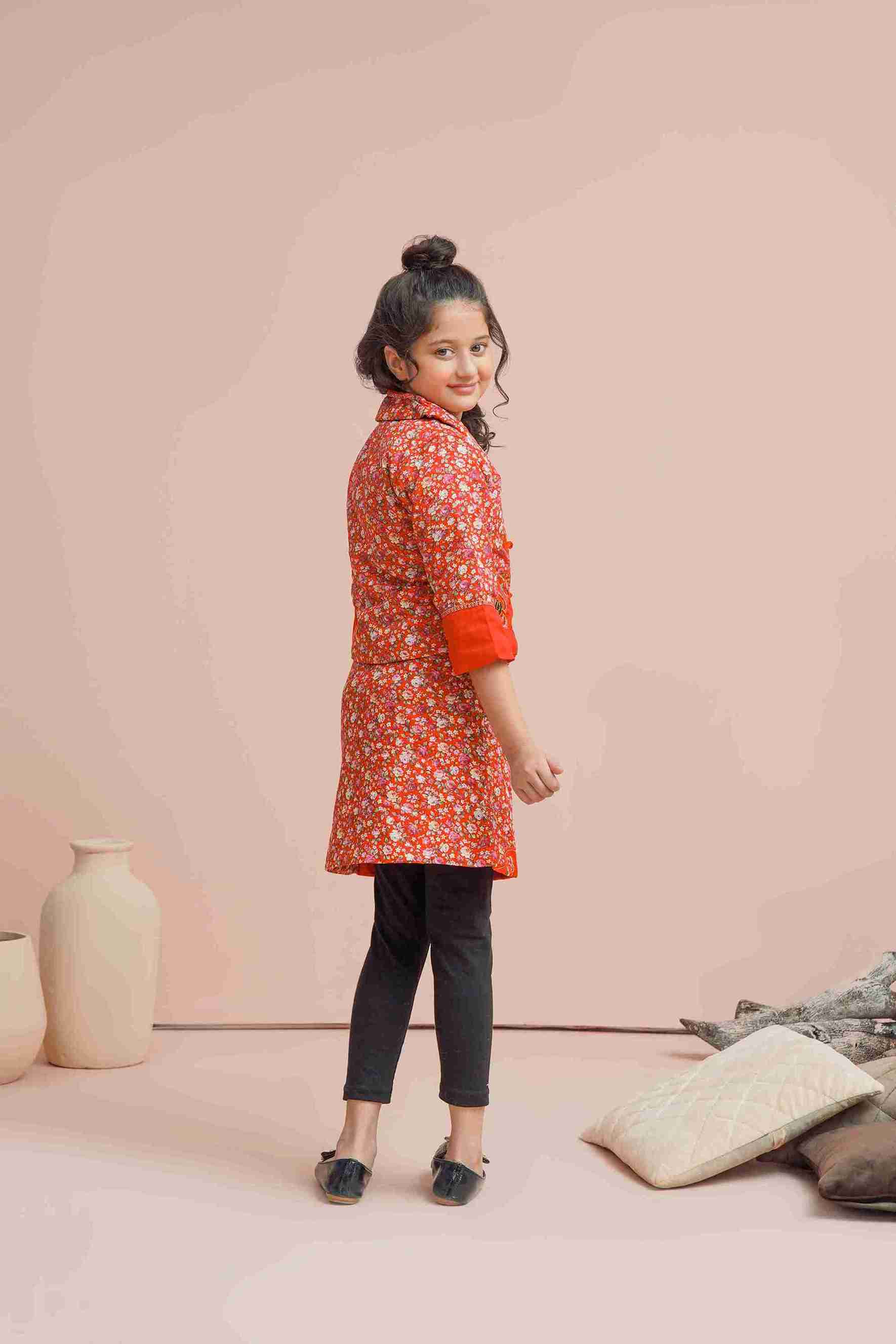 MeandMum 2-Piece Girls Red Embroidered Coat with Shirt 25WGSU003-MUL-RED